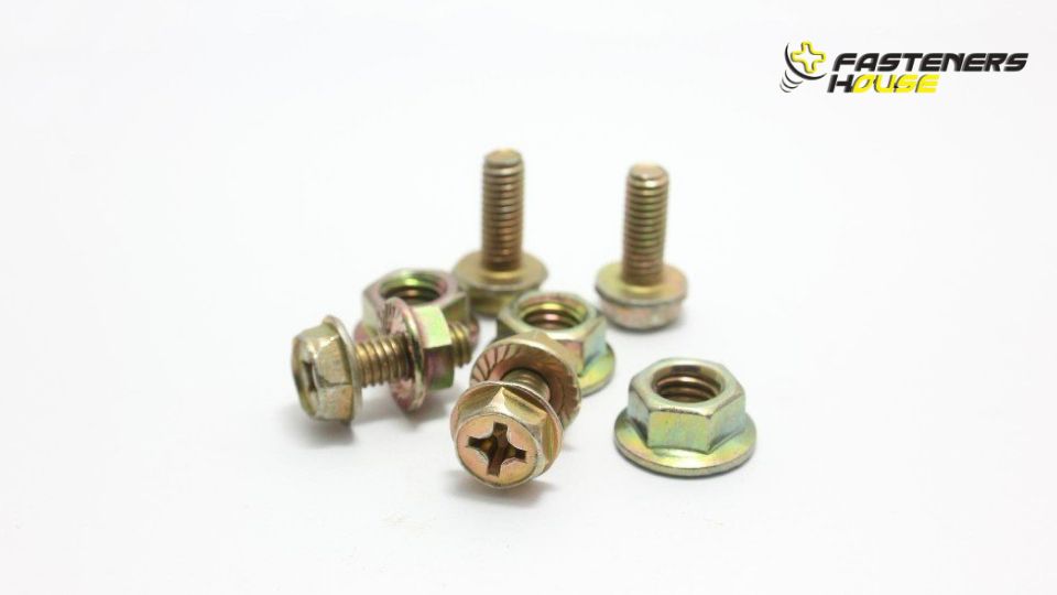 สกรูหัวเหลี่ยมติดแหวน IND เหล็กชุบรุ้ง โซลูชันหนึ่งเดียว เพื่อความเร็ว ความมั่นคง และความทนทานสูงสุด จาก FASTENERS HOUSE