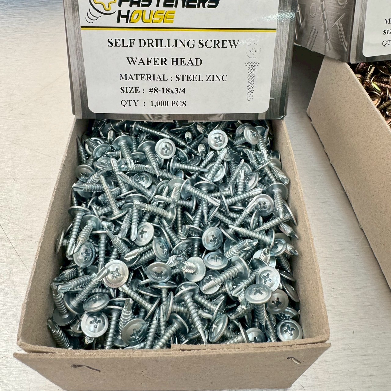 / สกรูปลายสว่านหัวเวเฟอร์ชุบขาว